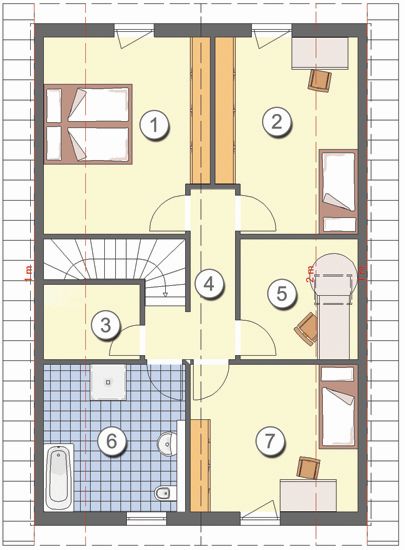 Das Dachgeschoss dient der Familie mit seinen drei Schlaf-zimmern und dem großen Badezimmer zum Ausruhen und Entspannen.
