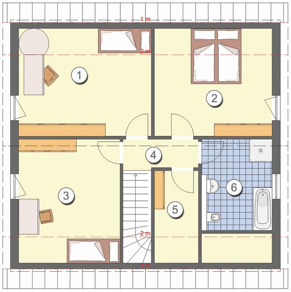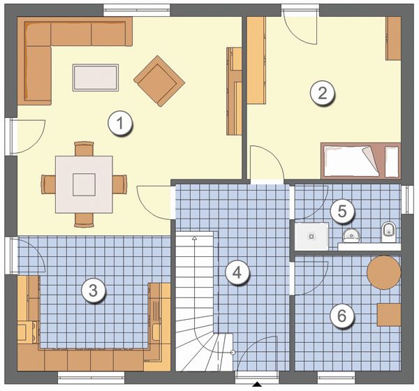 Im Inneren bietet das Ein-familienhaus viel Raum auch für die große Familie mit 3 Kindern. Denn das Haus stellt nicht nur allen Familien-mitgliedern ein eigenes Zimmer zur Verfügung, sondern gibt der Familie auch mehr als aus-reichend Platz für gemein-samen Freizeitspaß.