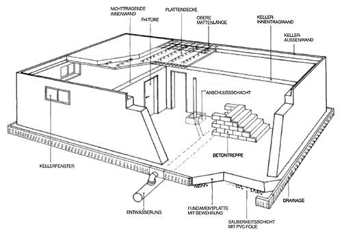 Der Keller zum FertighausEine Unterkellerung bietet viele Vorteile. Steigende Grundstückspreise führen vielfach zu kleineren Grundflächen, dadurch wird zusätzlicher Raum im Keller immer wichtiger. Ebenso wie der Ausbau des Dachgeschosses bietet auch die Unterkellerung die Möglichkeit einer erheblichen Vergrößerung der Wohn-, Nutz- und Freizeitfläche auf kostengünstige Art und Weise. Auch die Bauordnungen berücksichtigen dies, indem sie die Nutzung von Kellerräumen zu Wohnzwecken in vielen Fällen ausdrücklich zulassen, soweit die Anforderungen der Bauordnungen bei Vertragsabschluß berücksichtigt worden sind. Zurück zur Übersicht |