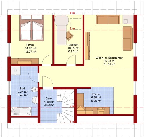 Mit der ins Dachgeschoss integrierten, kompletten Wohnung ist viel Platz geschaffen für zwei Familien oder drei Generationen unter einem geräumigen Dach. Ausreichend Raum für ganz individuelle Wohnkonzepte und trotzdem sicher finanzierbar mit dem durchdachten EasyWay-System.