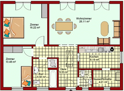 ein geräumiger Bungalow, der für alle Generationen geeignet ist. Ein besonderer Vorteil vor allem für ältere Menschen ist, daß sich alles auf einer Ebene befindet und so das lästige Treppensteigen entfällt.
