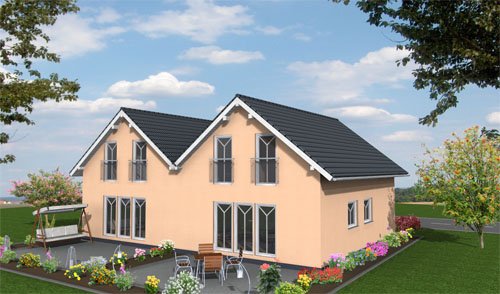 Das Dachgeschoss des "Duo 71.3" ist vom Raum her optimal genutzt. Der Flur ist bewußt klein gehalten zugunsten großzügig dimensionierter Kinder- bzw. Elternschlafzimmer. Auch das Bad ist mit über acht Quadratmetern groß genug für eine vierköpfige Familie.